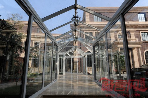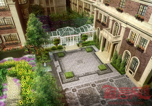 不同时期的精致的家具,绘画,及装饰品给人华美、考究的感觉。穿过玻璃的长廊,仿佛走在十五世纪的花园中,走廊尽头是位于3号楼的法式的咖啡厅。透过纱帘可以看到在树荫里嬉戏的孩子,和洒在草地上的阳光。与咖啡厅相连的是4号楼会所的沙龙。它隐蔽在会所的西南角,是举行酒会的最佳场所。室内全部为深蓝灰色木质壁板装饰,并镶嵌金色的线角,吊顶八边形藻井中嵌入茶色银镜,映衬出丰富的光影。