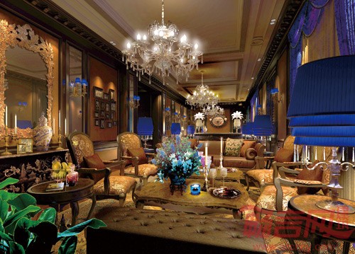 设计中选用了凡尔赛宫中玛丽.安托瓦内特皇后内室中的蓝色,显示了高贵、优雅的品质。也隐喻着它的专署性和高端会所的内涵。