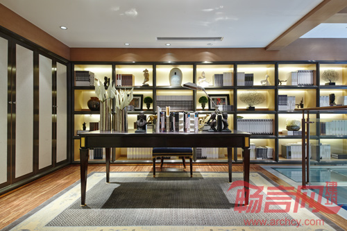 地下层主要是为了主人的收藏、学习、以及会客所用,各种红酒、雪茄以及艺术收藏品一览无遗,加上硬装细节的精雕细琢,让地下层充分表现出生活的品位及档次,低调的奢华,并不影响简约与禅意的保留,反而还让其得以延续。木饰面与墙纸的搭配使用,让整体空间具有价值感的同时,又不会感到沉闷。