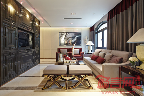 本案样板房面积达250m2,共有四层,分别是一层、二层及地下两层。