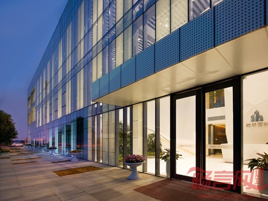 楷林(长沙)国际项目位于湖南长沙湘江西侧的滨江新城,处于河西商务区和湘江发展带交界处,占据着整个城市最核心的位置。营销中心位于楷林国际大厦南侧,东临滨江景观带与城市公共绿地,环境优美,交通便利。建筑主体为东北——西南朝向,立于三角形地块的一侧,留出小型广场营造绿化。