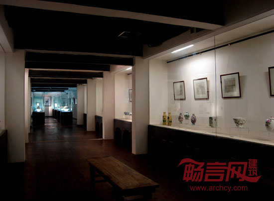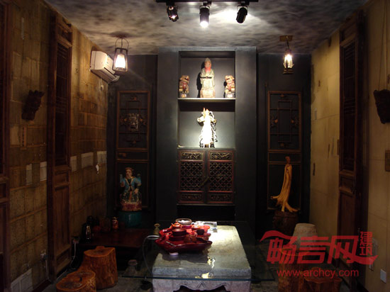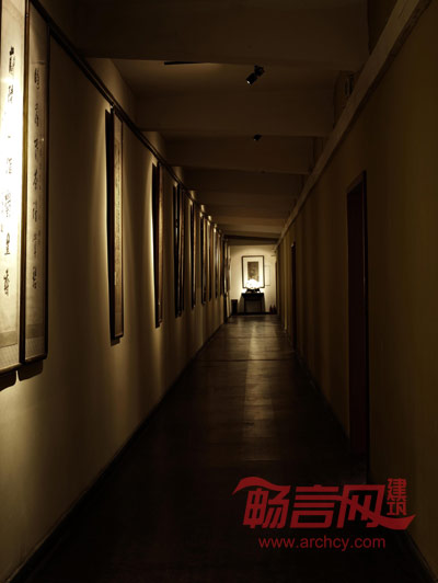 从墙面陡然冲出的钢化玻璃体块毫无掩饰的表现了现代和古朴的对比,设计师用晶莹的玻璃块示意传统文化积淀之下,新生的艺术会更加有魅力。