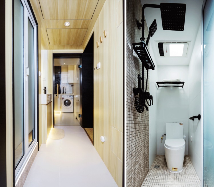 ▼卫生间外侧玻璃折叠门(左)与卫生间内部(右)