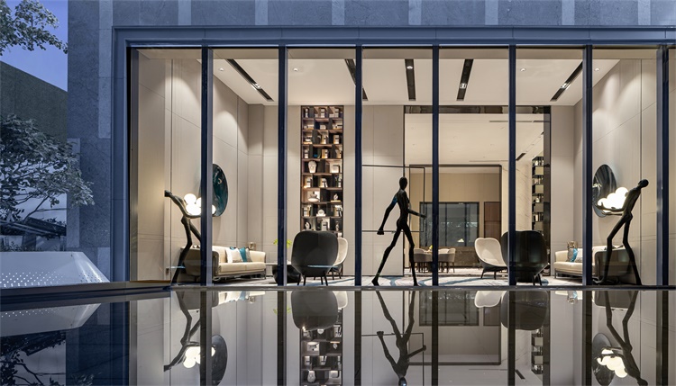 设计师将“水”作为设计元素贯穿项目始终,在叙事的艺术时空里,空间和时间共同标志着一个被认知的整体,在时代中融合发酵,它跨疆越界,始于东方,融于当代。