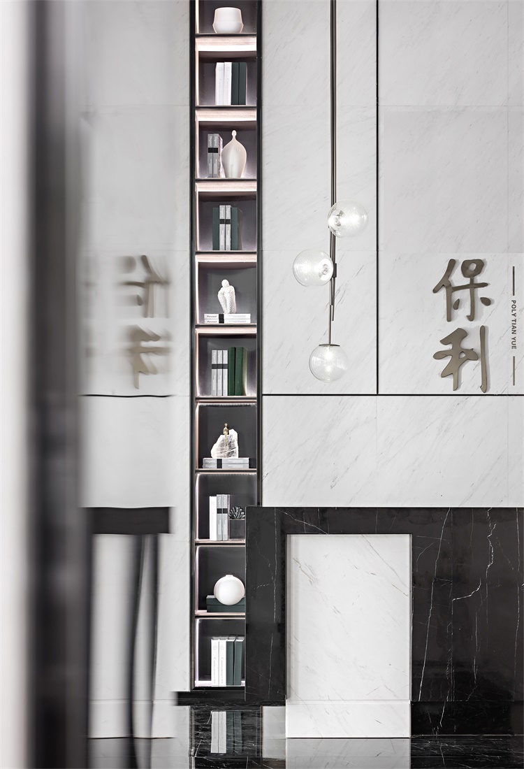 雅士白大理石温润而遒劲,隐约可见的自然肌理,化作简约凝练的饰面形塑空间意境;橙色的局部点缀蕴藏着无限的生机,如同乐章的旋律,在整个空间中变奏交响,悦耳动听。