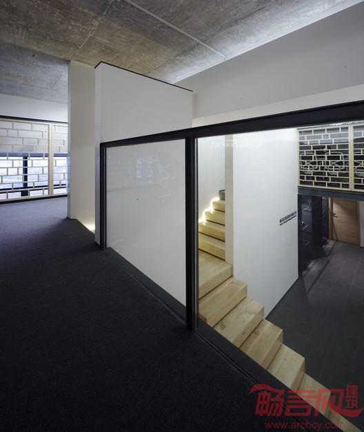 为了营造一个干净简练,又具有亲和力的空间,设计师将传统白墙灰瓦的灰白色调关系运用至空间中,并搭配温润的木色。结构上则采用似分非分,似合非合的趣味组合方式和传统建筑的尺度关系,令观者在这个室内建筑中体验空间游戏的乐趣。