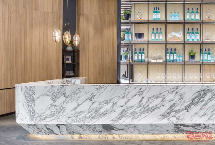 另外,围合感的空间使洽谈交流者集中精力于此,在细节的设计上设计师也做出诠释:“围”即视线的范围,更具隐私性,“透”则是视线的亮点,基于室内氛围的营造。他不单以视觉为衡量事物存在的准则,而是从空间中使用者的触感出发,进而挖掘空间的意愿和理想。
