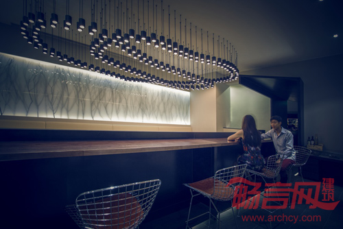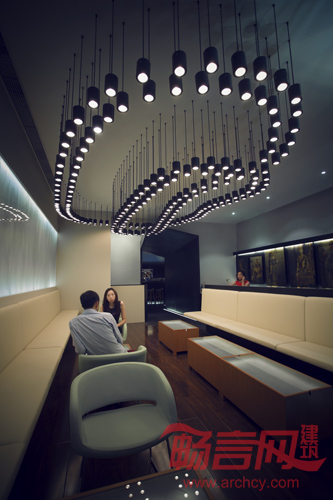 “镜画间”和“达达间”内置的荧光灯和置顶射灯与“吊灯间”的光效达到了鲜明的反差效果。