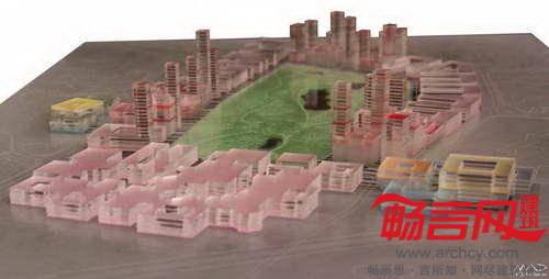项目保留了原有的道路网络和场地的基础设施,为降低停车场表面积,在整个场地地下建设了单层停车场——这增加了密度,并结合新开发区域的清晰架构,将此前散布的绿化区集中到一个公园内。公园建筑范围内的利用率将高达300%,远远高于公园目前的指数。
