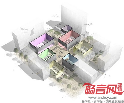 阿德迦耶建筑事务所计划在文化园区内建设一座公共大厅,这个大厅与9个文化机构都互相连接。