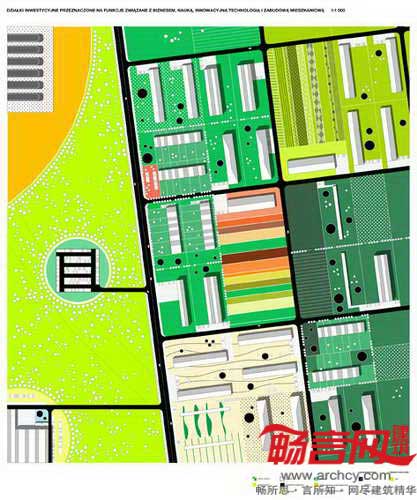 新规划方案将促进Vistula河岸一代的发展,包括湖泊、池塘和蜿蜒的支流在内的水域都将被开发成休闲公园和体育场馆(骑马场、高尔夫球场、网球场)。开发完成后,现有的居住地会被改造成农业、休闲度假村。项目场地中央地带将修建大规模的主题公园,并有配套酒店和商业基础设施。