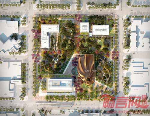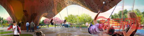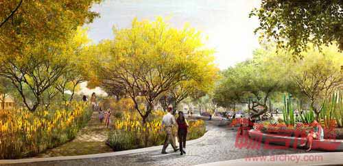由WEST 8景观事务所,Colwell Shelor公司以及Weddle Gilmore公司组成的设计团队共同完成了美国亚利桑那州MESA市中心广场开发项目。该方案响应了某国际竞赛的号召,将参与由另外两个参赛方案的竞争。项目旨在创造具有外表特色的公共空间,提供有序和被动式功能,促进该地区的未来发展。方案围绕中央聚集点,提供一个连贯的黄铜外观的名为“风舞者”的项目。这一生动的枢纽项目将会高效的分期完成,从而节省公共资金。预计今年10月将产生项目优胜方案。