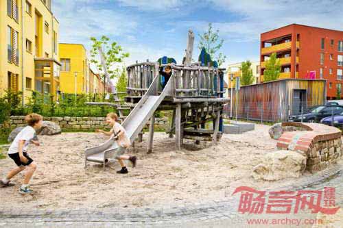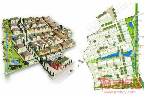 项目旨在为居民家庭提供价格合理、可持续性的健康住宅,项目遵循了周边区域较大的建筑密度,从而以尽量低的成本提供尽量多的住宅。项目场地原来是工厂厂区,为了创造宜居的健康场地,项目对土地、土壤都进行了大量改造处理工作。生态村有效地控制车辆进入,规定车辆必须停放在划分的停车点或地下停车库,从而腾出更多用于花园、街道和人行道的空间,此举同时也鼓励了人们步行或骑车出行,并提升了玩耍儿童的安全。