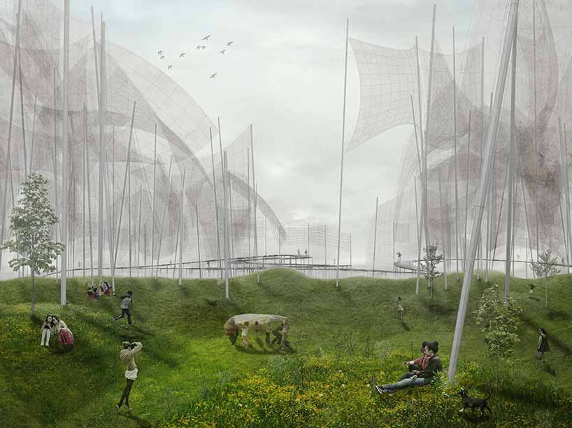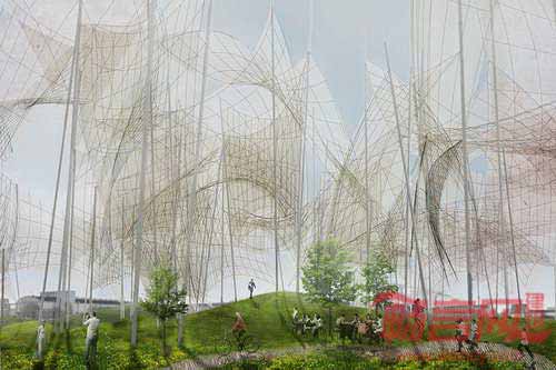 Windwaker大地艺术公园坐落在哥本哈根工业环境中,由建筑师Julio Alonso和Miguel Carro设计。公园计划成为吸引游客、市民的新地标,设有高达的立柱,鼓满的风帆将生成可再生能源。这一高低起伏地形上布满星星点点的阳光,开放但遮风避雨,游客可以以独特方式感受能源收集过程。艺术家所谓的“小美人鱼”之间的关系以及提出的基础设施方案对于该地区经济起到了推动作用。公园方案如同扬帆启程的船舰,由吹拂在雕塑上的大风推进。