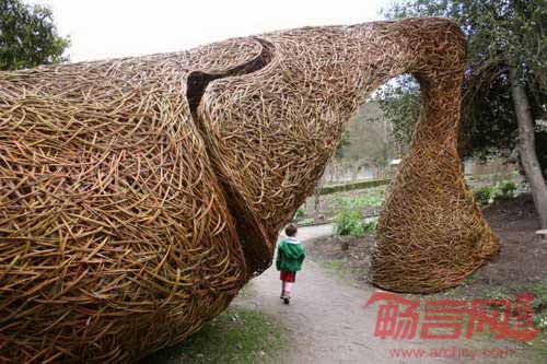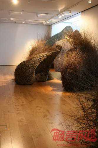 部分作品仿佛大声地赞美这些空间,它们出现在我的展览中;另外一些空间不为人所知,比如位于Chatsworth的“成长形式”大型空间设计,设计师从内到外编织,最终将入口密封。