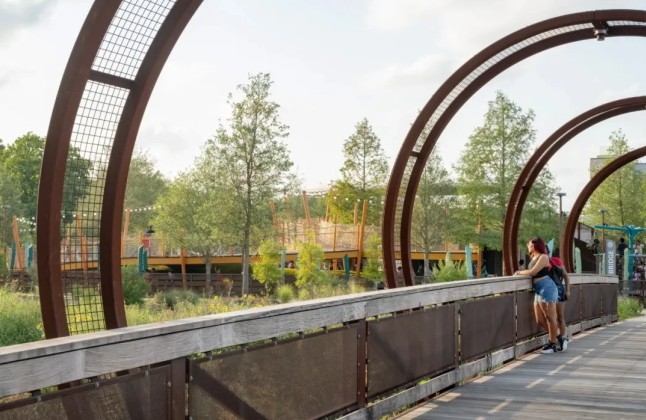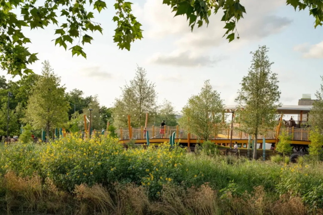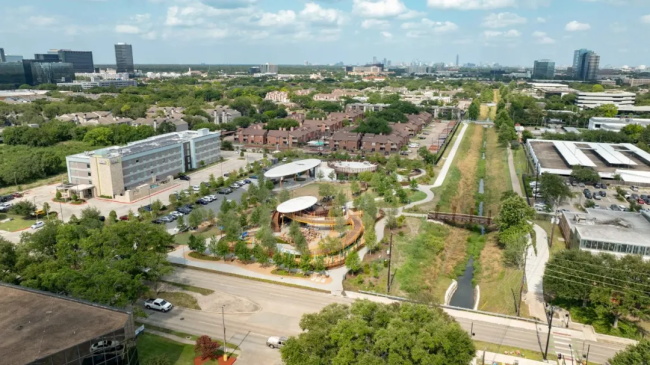 项目位于休斯顿西部,将一片未被充分利用的土地转变为一个充满活力的多功能社区核心。该社区历史上缺乏绿地,此公园的设计旨在弥补这一缺失。它不止于一个休闲场所,更是一个融合生态、游乐与社区生活的动态社交基础设施。
