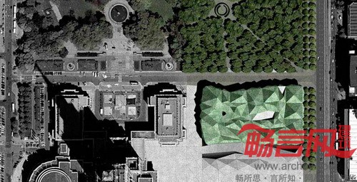 在波兰首都华沙,有一座表面长满了绿色植物的现代艺术博物馆。这座博物馆仿佛是由很多不规则的几何体堆积起来的,而博物馆所在的广场地面也被划分成了很多几何图案,其角度与线条和博物馆的几何外形很相似。