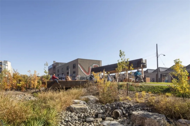 项目引入了微型森林,种植超过3000株植物,其中包括1500棵新树。植被的选择既体现了场地的近代历史,也凸显了公园的未来用途。一个与整体设计理念完美融合的生物滞留区,负责处理整个公园以及附近街道的径流。