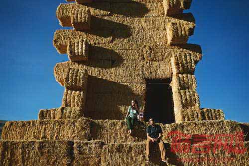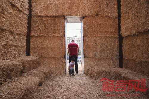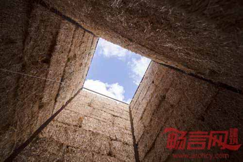 项目将288个300kg稻草包围绕金属结构搭建。方形布局拥有四个封闭边角,锥形体无需灰浆或其他加强型结构。