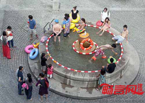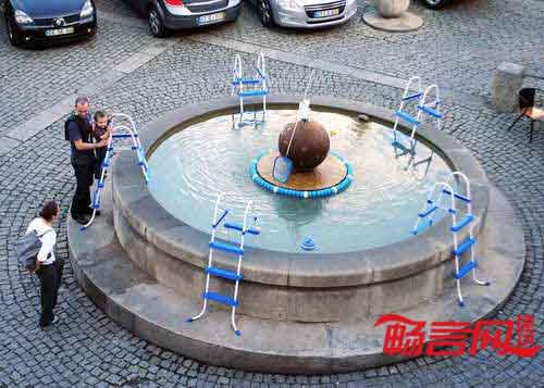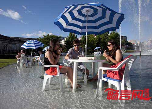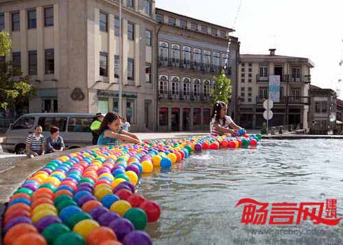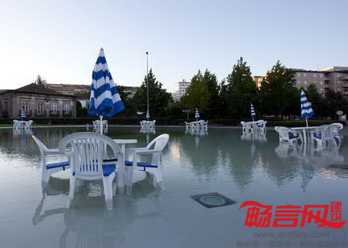 葡萄牙LIKE建筑事务所和时尚设计师Ricardo Dourado合作,使用沙滩椅、花园用具及玩具将葡萄牙吉马良斯的人们吸引到城市喷泉池中。