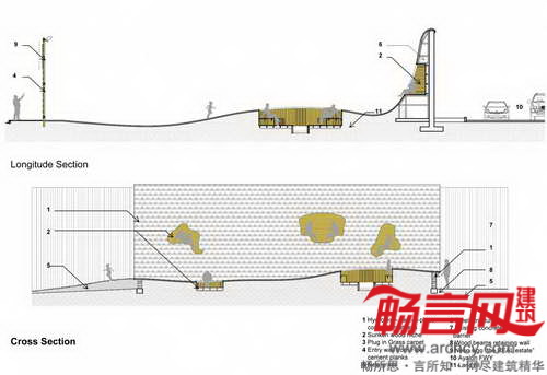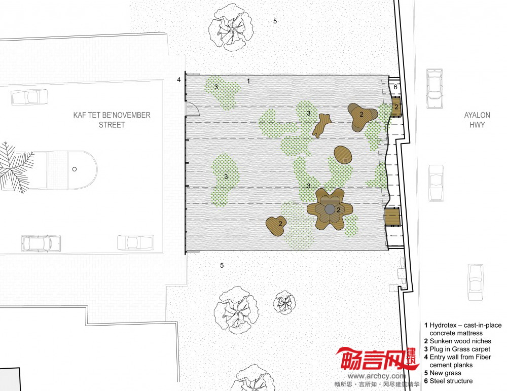 公园所在的地中海型城市Bat-Yam是以色列人口最为稠密的城市之一,大多数市民居住在上世纪50年代为城市新移民建造的住宅中。项目位于一条宽阔的住宅区街道顶端,街道被一道屏蔽高速公路噪音的混凝土墙拦断。这种边角属性使得长条形的场地变成当地居民所谓的“垃圾”空间,居民们在此倾倒垃圾、举行节日篝火活动、遛狗,以及毒品交易等不法活动。
