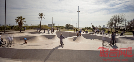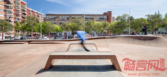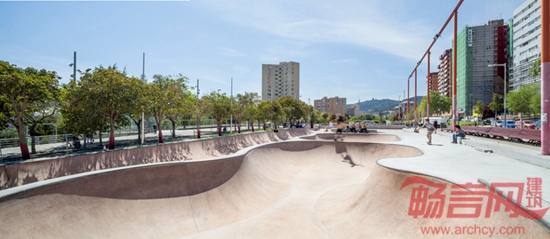 SCOB建筑事务所设计了巴塞罗那的三个溜冰场公园。这三个项目分别位于Poble Nou,Les Corts和Nou Barris区。项目的不同之处在于其位置,此前巴塞罗那的溜冰场大多设在市郊。本项目结合了旱冰运动和城市空间功能。设计目标集融合体育、公园和广场于一体。公园将不同背景的人们聚合起来,鼓励社会交流,并让孩子发展对于溜冰的兴趣。混凝土材质的洼地和坡道与公园景观无缝式连接,让两个公共休闲空间相互作用。