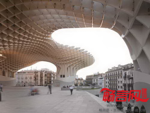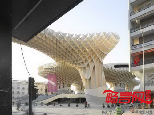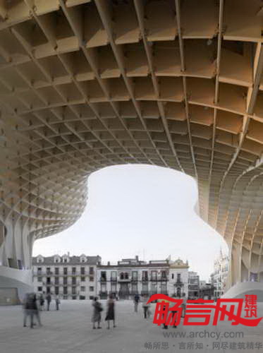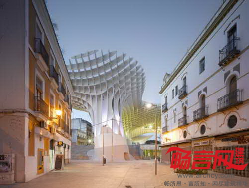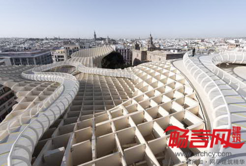 巨大菌类结构的Metropol Parasol公园包括一个考古博物馆、农产品市场、高架广场、若干酒吧和餐厅以及“阳伞”顶部的观景阳台。轻质金属伞状结构将考古挖掘场地转化成了当代城市地标。立柱成为了进入博物馆、广场和观景台的显眼入口,在历史和现代城市间构建起特殊联系。Metropol Parasols公园的混合气质给塞维利亚中心区域的文化、贸易发展注入了动力。
