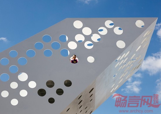 观光塔的各个侧面被打了许多远行的孔,这样既能与船舶上的圆形舷窗相呼应,又便于人们观看奥尔胡斯港。