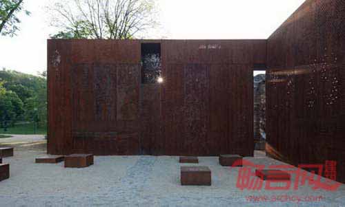 匈牙利建筑事务所MARP将一处文艺复兴时期宫殿遗址改造成耐候钢瞭望点。