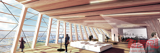 新建的景观亭将用于展览和当地居民、游客和研究人员的集会场所。评审团选择此项设计是因为它“有诗意、简单而且有梦幻设计感”。该景观亭是一个巨大的木架结构,优雅地悬浮在Sermermiut山谷之上。木架上方铺设有甲板,两端与地面相接,这样人们就可以走到景观亭的屋顶观赏美景。