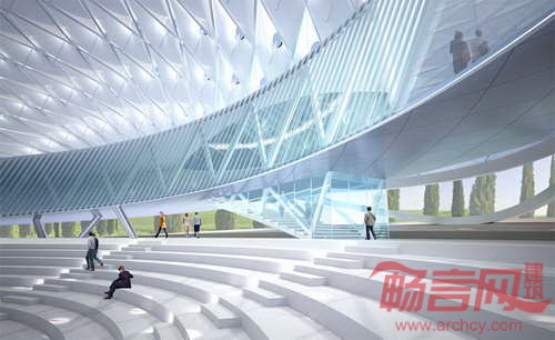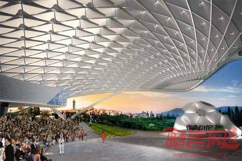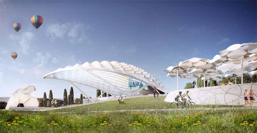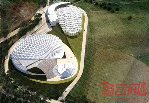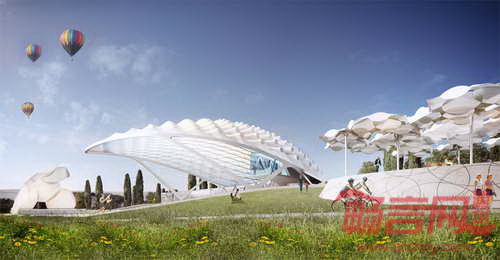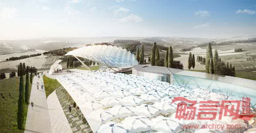 ASYMPTOTE建筑事务所受委托设计位于意大利山城Peccioli的天使公园项目。该综合项目包含一个具有顶棚的800座位剧场和多功能互动型雕塑。景观具有多种观赏区,游客可以自由欣赏周边乡村景色。设在纽约的事务所将该项目构想为“在纯朴原始风景上的景观介入,在历史背景下融入激发灵感的设计可能。”剧场采用智能设计,安装了可活动顶棚。白色弹性织物通过开孔系统和漏斗设计,起到控制空气流动和自然光照的作用。