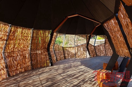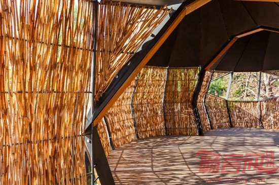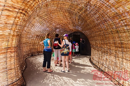 为了给游客带来独特的动物园体验,设计师采取了沉浸式的户外游览室设计方案,其中包括一个‘入场通道’和多个树屋结构的游览室,均采用藤条编制而成。其中树屋结构为主要部分,每个树屋结构包括多个几何形状的舱室,建在黑色结构钢框架上。