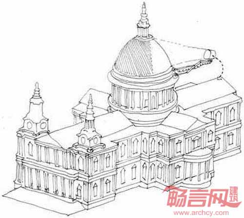 设计师称,“教堂穹顶和月亮都会盘桓在伦敦城上方,这样这座城市就有了两个‘月亮'。教堂将凡间关注点和天上王国结合了起来。”
