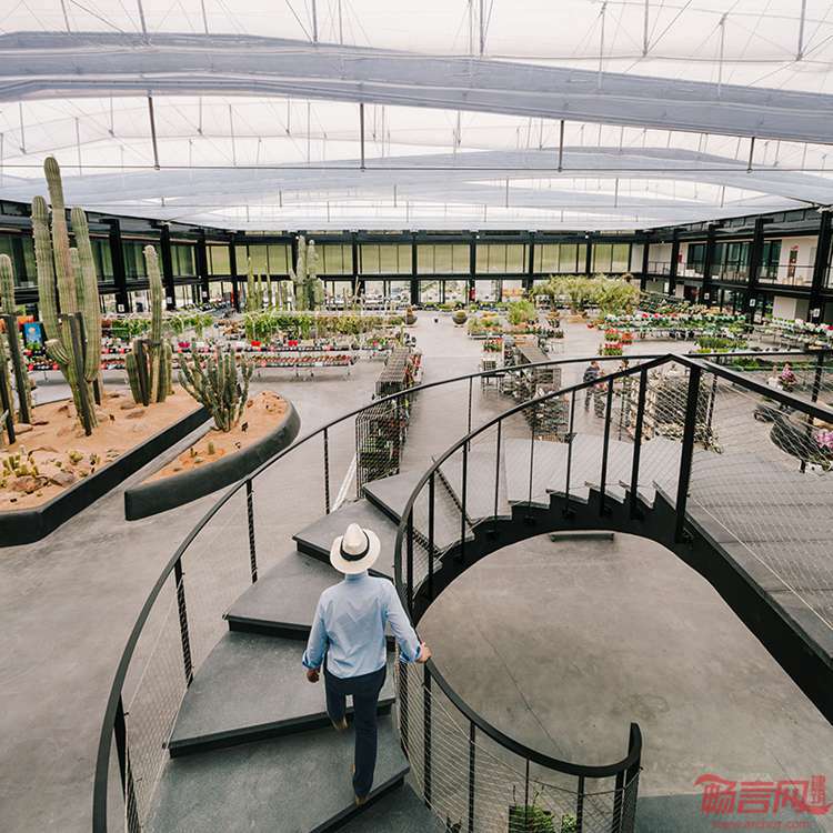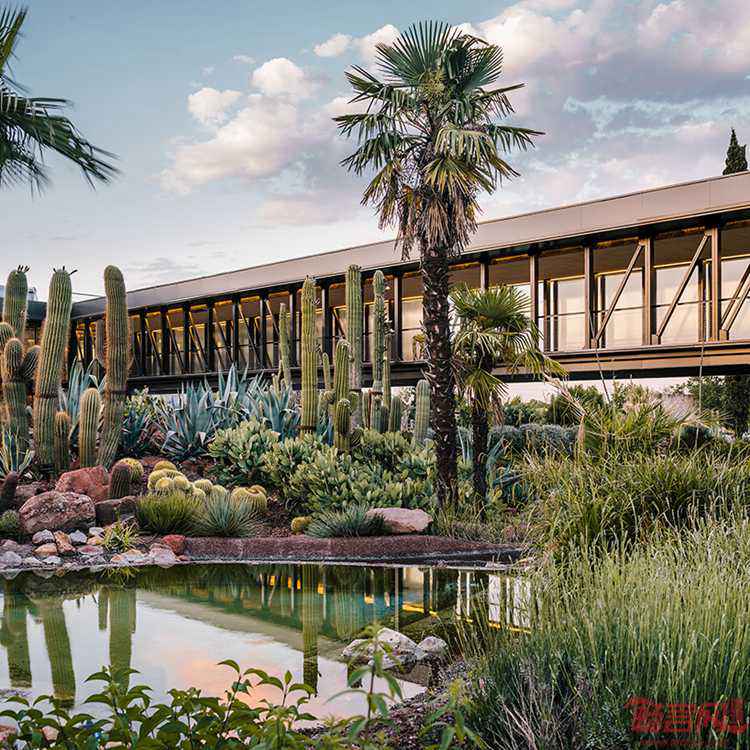 Garciagerman工作室完成了西班牙马德里北部小镇上的沙漠城市项目。这座仙人掌中心拥有宽敞的植物园,内有种类多样的旱生植物。通过张力绳索悬吊的室内温室为植物提供生长空间。这里不仅每日对外开放,甚至还提供导游服务。设计师认为这是一座公告牌建筑,一座高架的横向结构,同道路平行,内部空间序列围绕回廊建造。沙漠城市温室上方舍偶屋面顶棚,这里还有展厅和销售场所,餐厅,商店,办公区。