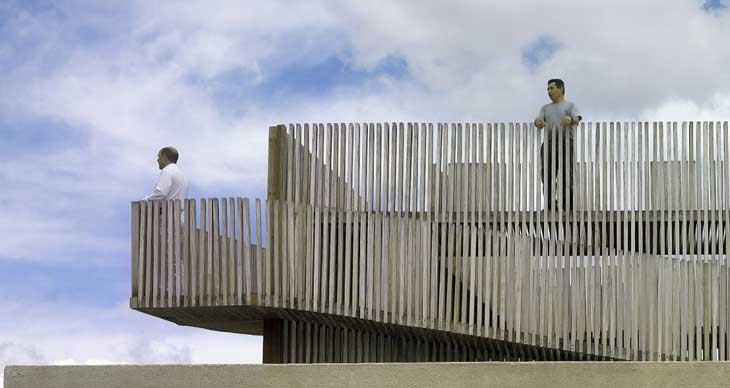 格拉纳达纪念塔是由Antonio Jimenez Torrecillas完成的一个谜一样的建筑作品,历史上曾经是一座防御塔。2000年,安达卢西亚政府关闭了这一景点,希望重塑纪念塔曾有的辉煌,并恢复瞭望塔和景点的属性。和所有与防御工事相连的居住区一样,其位置并不是随意选取的,而是根据地理视觉控制网络的原则。设计师理解建成环境和自然环境的关系,在前工业风格的城市中,这是基于坐标型纪念物和景观不确定延伸之间的多种尺度而建立的。