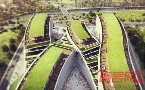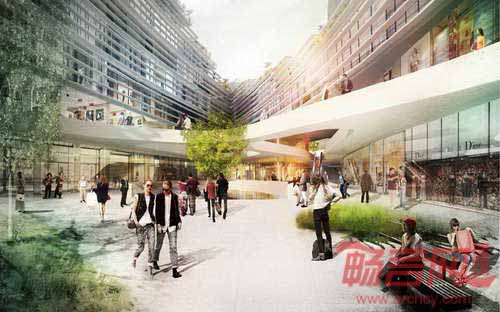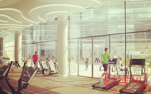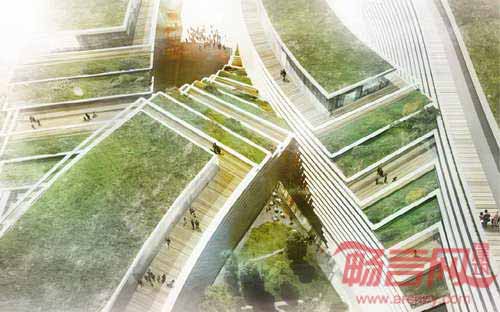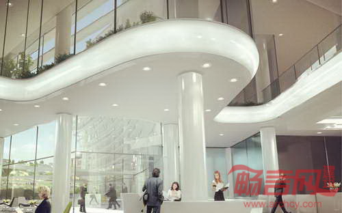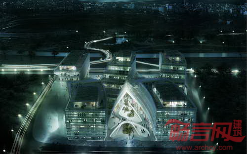 园区建筑一层商业活动蔓延到广场和景观之中。建筑上层办公区域连同户外绿色平台,繁茂的绿色植物增添了生气,使得炎热的春夏季节变得凉爽宜人。建筑使用的遮阳百叶结构对太阳辐射起到了防护作用。