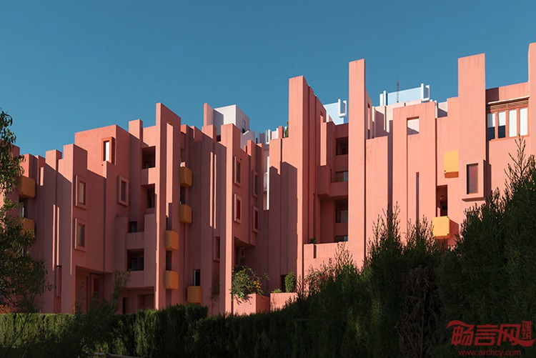 Andre Gallardo将位于西班牙的La Muralla Roja称作“摄影师的天堂”。这一项目由Ricardo Bofill于1973年完成,带有堡垒般的外立面,模仿周边峭壁的轮廓,成为阿拉伯地中海风格建筑的代表。这一项目带有夸张的色彩,强烈的几何图形和极具特色的当地植物。