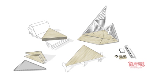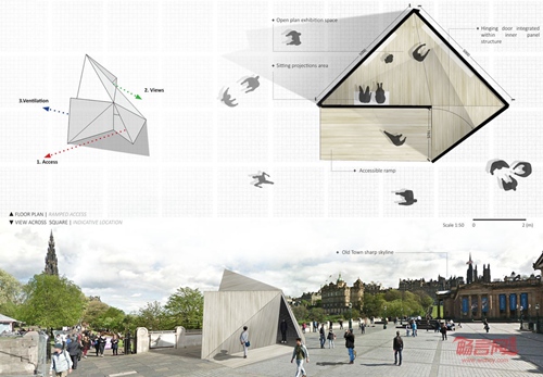 英国爱丁堡当地建筑事务所Konishi Gaffney Architects在Pop-Up城市博览会场馆设计竞赛中获胜。Pop-Up城市博览会是苏格兰建筑节的头等重要活动,届时在Mound广场上会布置来自欧洲各地的pop-up(仿佛从地下冒出的)场馆。