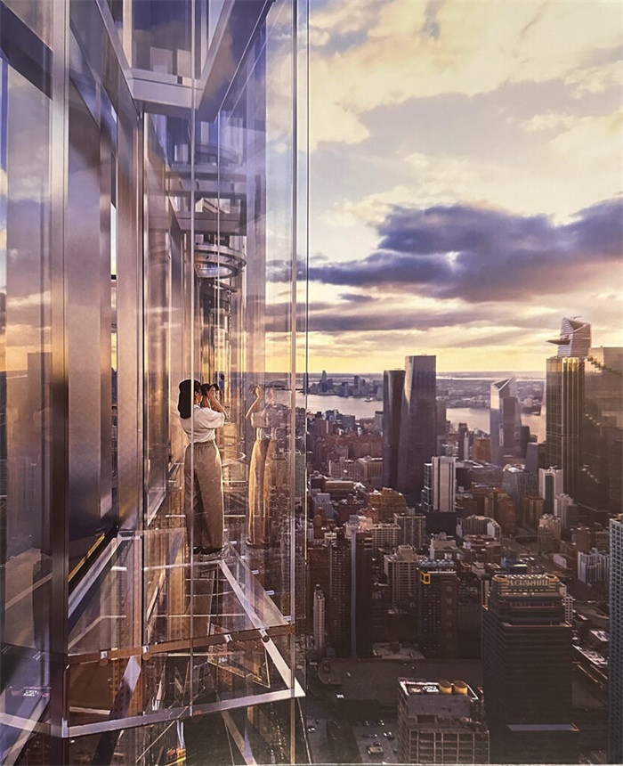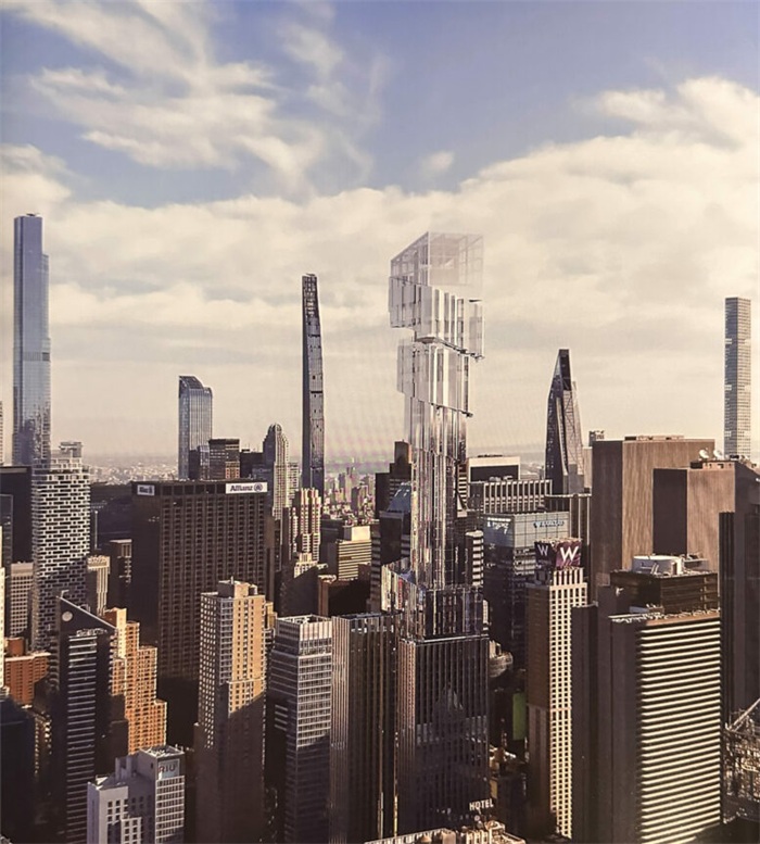 建筑总高52层,底部为Art Deco风格,以表达对纽约20世纪初经典建筑的致敬。整体由三组垂直体量构成,裙楼逐渐向上交错收进,中层收束为纤细塔身,顶端为螺旋状火炬形冠顶——项目亦由此得名。