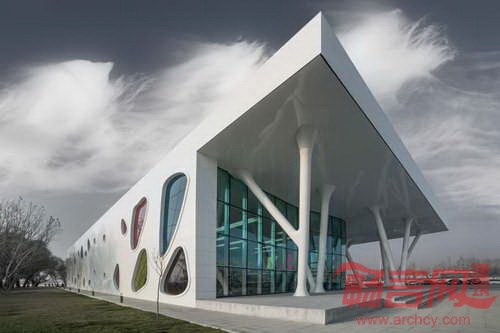 Bahadir Kul建筑事务所在距离土耳其Kayseri市区9公里的位置完成了一座溜冰场设计。该项目旨在营造社交中心,倡导健康积极的生活方式。设计方案参考冰块流动、浮动的属性,创造出形态原始的柱子,建筑屋面则遮盖了半户外的露台。