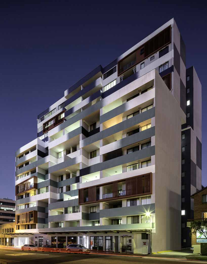 TONY OWEN PARTNERS公司完成了悉尼焦点公寓的设计。该项目共有15层,成为全市最大的完全钢框架住宅楼。项目涵盖120套住宅,运用轻量混凝土楼面和墙壁,也成为首批由MERHIS地产公司开发的项目之一。该原型建筑运用不同的施工工艺,以可持续的预算成本,达到了较高的建筑质量。