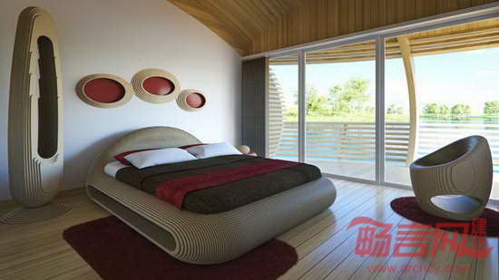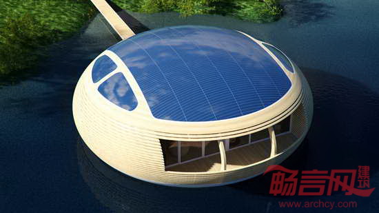 水平面的升高将改变这个世界。除了适应这种改变,人类别无选择。伦敦Ecoflolife公司专注于设计生态友好的漂浮住宅。公司目前推出了“水巢100”项目。该建筑面积100平米,直径12米,高度4米,完全采用回收层合板和回收铝壳。浴室位于水巢一侧。大面积窗户赋予住宅全景视野。浴室和厨房都设有天窗。顶部设有60平米太阳能板,可生成4kwp电能。设计师可根据客户要求定制,包括办公、吧台、餐厅、零售和展示空间。