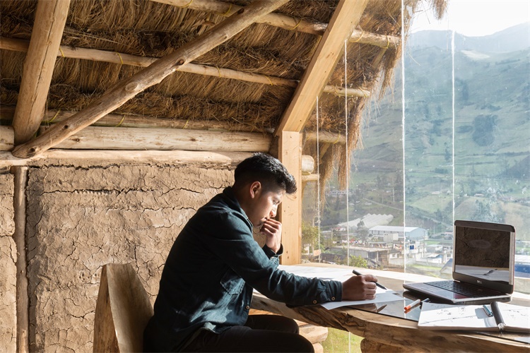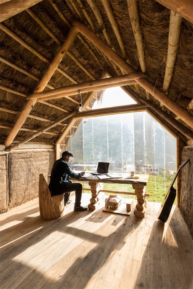 建筑系学生David Guambo在厄瓜多尔农村为自己建造了一个小型工作室。屋顶采用稻草屋顶,木质框架。