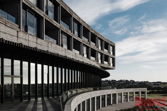 Wood Marsh建筑事务所设计了位于澳大利亚维多利亚的皇家汽车俱乐部Torquay度假村。坐落于壮观的沿海道路一侧,这座汽车组织的豪华度假设施设有多种功能空间,具有简约优雅的系统和美观的外形。建筑由一系列如同从环境中生长而出的柔和的弧形形状组成。建筑室内外采用了沙色的生土墙面。室内房间面朝海洋,低维护成本的天然材料进一步凸显了与自然贴近的设计主旨。
