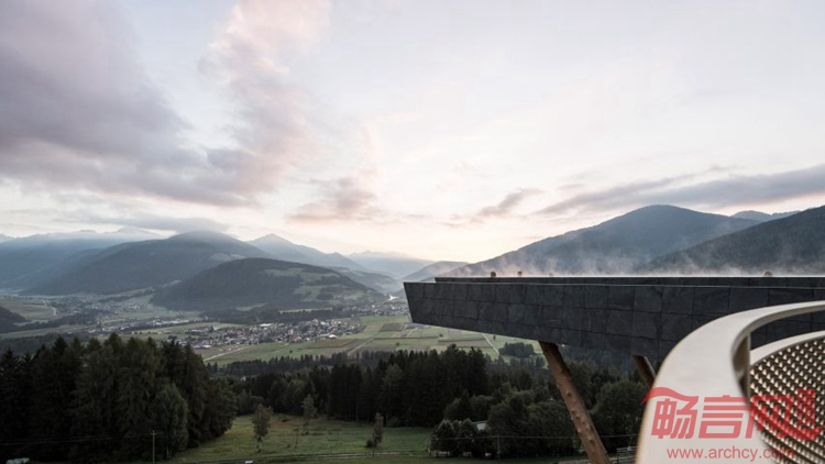 NOA为Hubertus酒店设计了25米长的游泳池,该项目位于意大利SouthTyrol,是面向滑雪和登山爱好者的一个度假酒店。项目位于Kronplatz山脚下,Dolomites山脉作为阿尔卑斯山支系,拥有壮观的山景。这个长方形泳池从酒店伸出距离长达17米,离地12米。