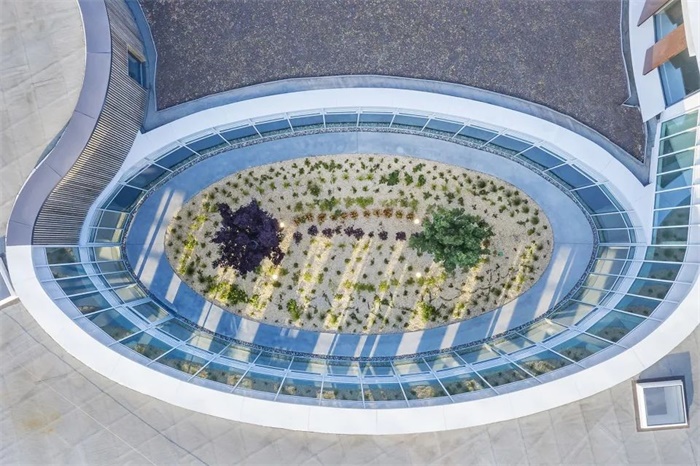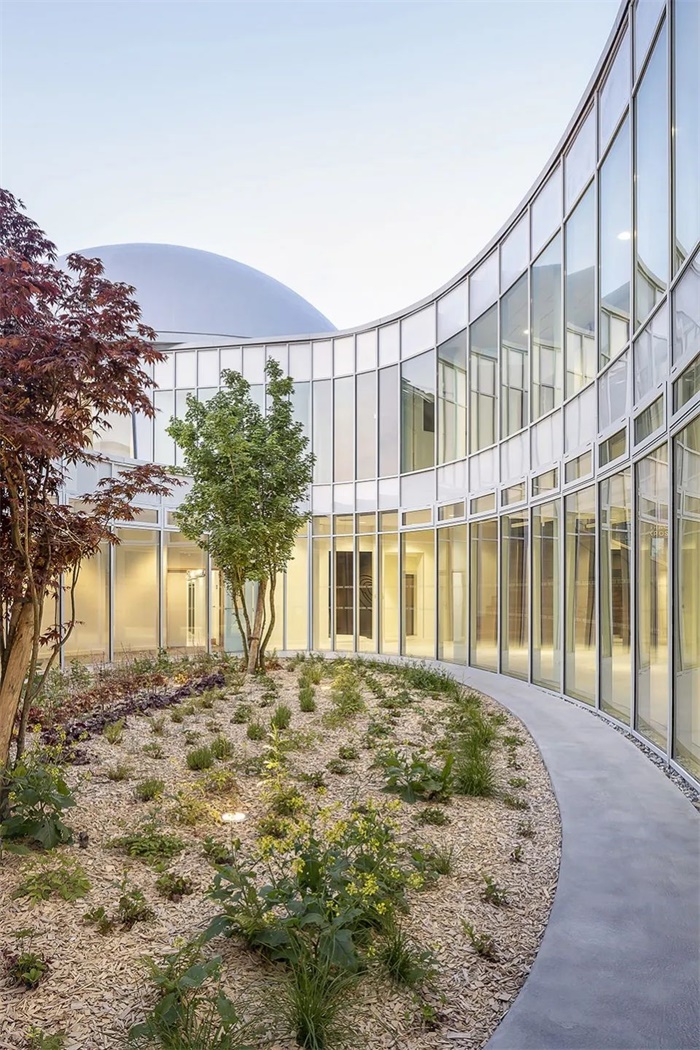 从接待区、展览空间、露天剧场到建筑的穹顶,持续运动的概念贯穿了整个项目。一条微微倾斜的坡道连接了建筑的各处空间——从半透明的外立面可以清晰地看见它的全貌。