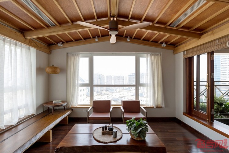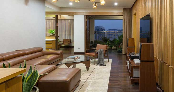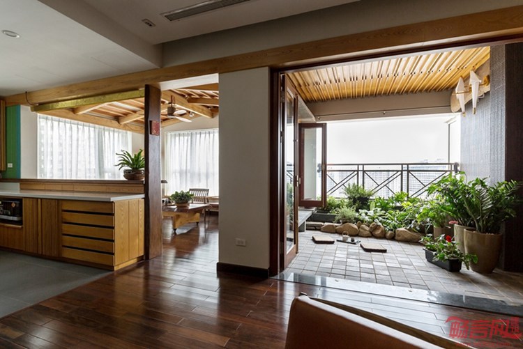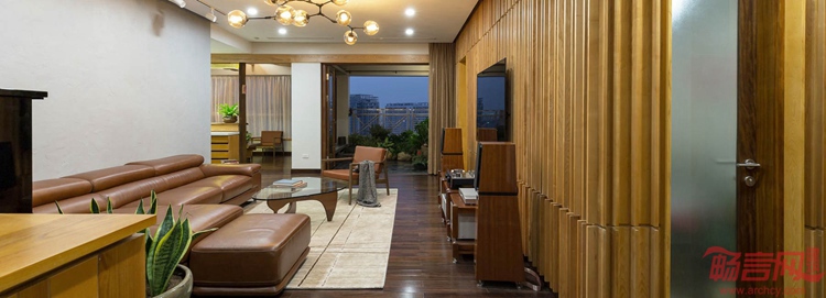 Atelier 12工作室完成了位于越南河内的2606公寓改造。这是一座150平米的项目,业主夫妇希望空间明亮,有良好的声音流动效果。新的木质内饰和扩大的绿化阳台实现了连通。实木成为这一项目的主材,客厅墙面铺设了花纹型吸音板,以实现更好的声效。卧室和浴室也是木质空间,开放式餐厅链接阳台,后者设有木屋顶,与茶室或冥想室类似。