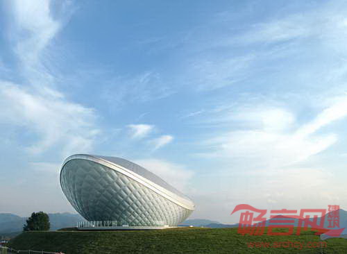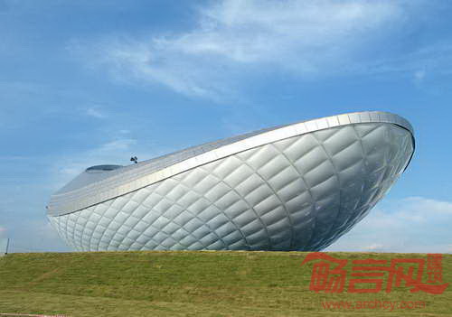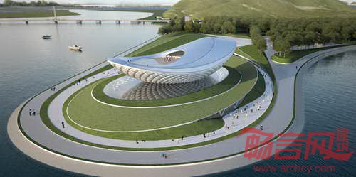 韩国大邱河流文化展览馆(ARC)由Asymptote Architecture建筑事务所设计,设计方案结合自然、科技和空间处理,在大邱城市水岸营造出大胆、醒目的建筑设计,同时试验了身临其境的投影科技。在周围区域中,大胆的圆弧曲线形式形成强有力的视觉焦点。建筑外墙材料处理契合了空气环境条件。建筑圆弧设计与环境构成共生对话,突出河流和自然体验。建筑设有尺寸为60x20米的无缝投影表面,安装在莫比斯环装置中。项目是2012年韩国丽水世博会四个河流文化展馆之一,展示了环保的河道修复工程。