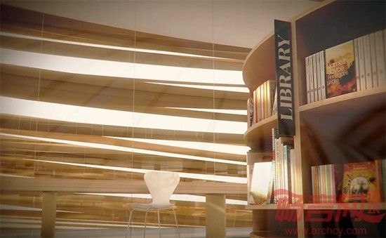 建筑整体结构由木质屏板所‘缠绕’,形成动感迷人的外立面效果。