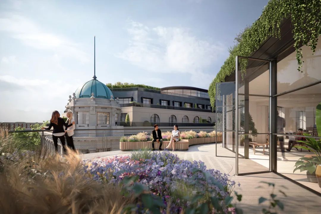 新开发项目拥有一系列交通连接性强、自然光线充足的空间和服务,为未来的用户提供愉快的工作环境。双层高的大堂采用天然材料和亲生物设计,与项目的可持续理念保持一致。生物多样性的露台和屋顶花园完善了便利设施,同时可欣赏到伦敦和海德公园的景色。